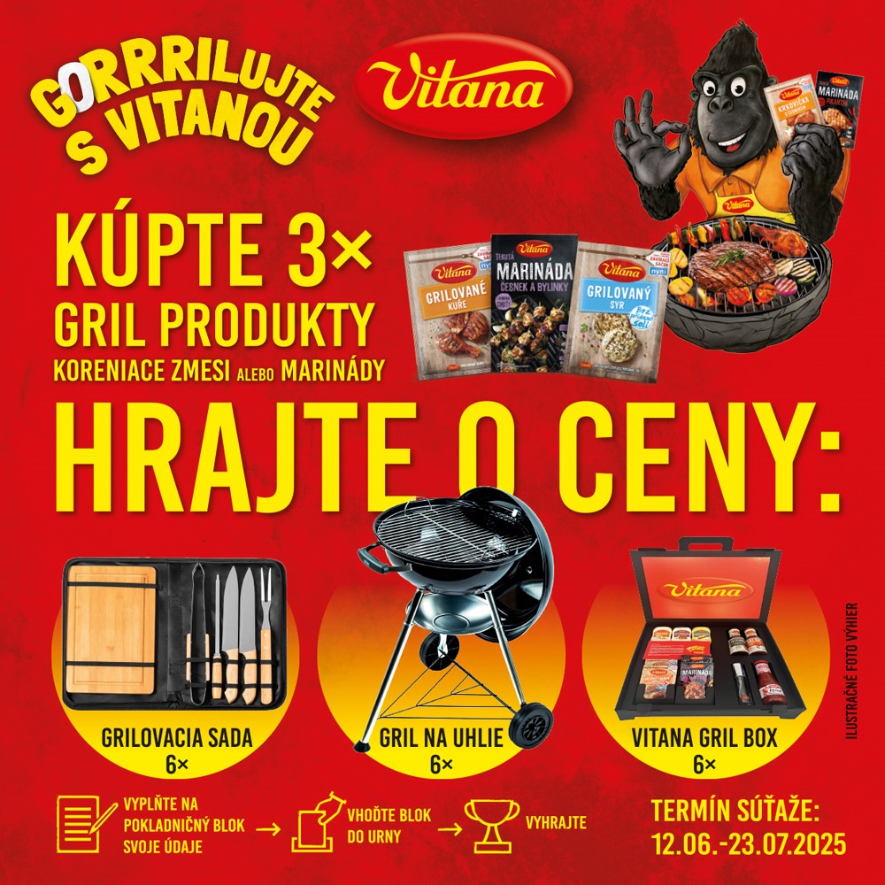 Leto je tu a s ním aj čas grilovania! Coop Jednota Galanta v spolupráci so spoločnosťou Orkla Foods Slovensko pre vás pripravila jedinečnú spotrebiteľskú súťaž „Gorrilujte s Vitanou“, ktorá prebieha vo všetkých predajniach Tempo Supermarket zapojených do súťaže. Zapojte sa aj vy a vyhrajte štýlové grily Weber, grilovacie sady či praktické Vitana gril boxy!